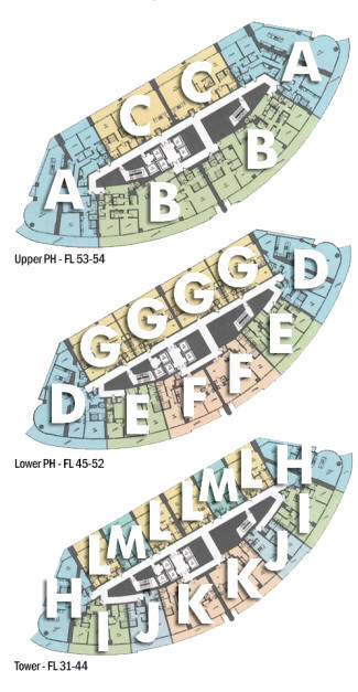 - bedrooms, 1,500-1,800 sq ft two bedrooms and 2,500 plus three bedrooms. The penthouse levels from the 45th to the 52nd floor will have ten foot ceilings. The 53rd and 54th floors will feature 3,300-4,500 sq ft Tower Suites.